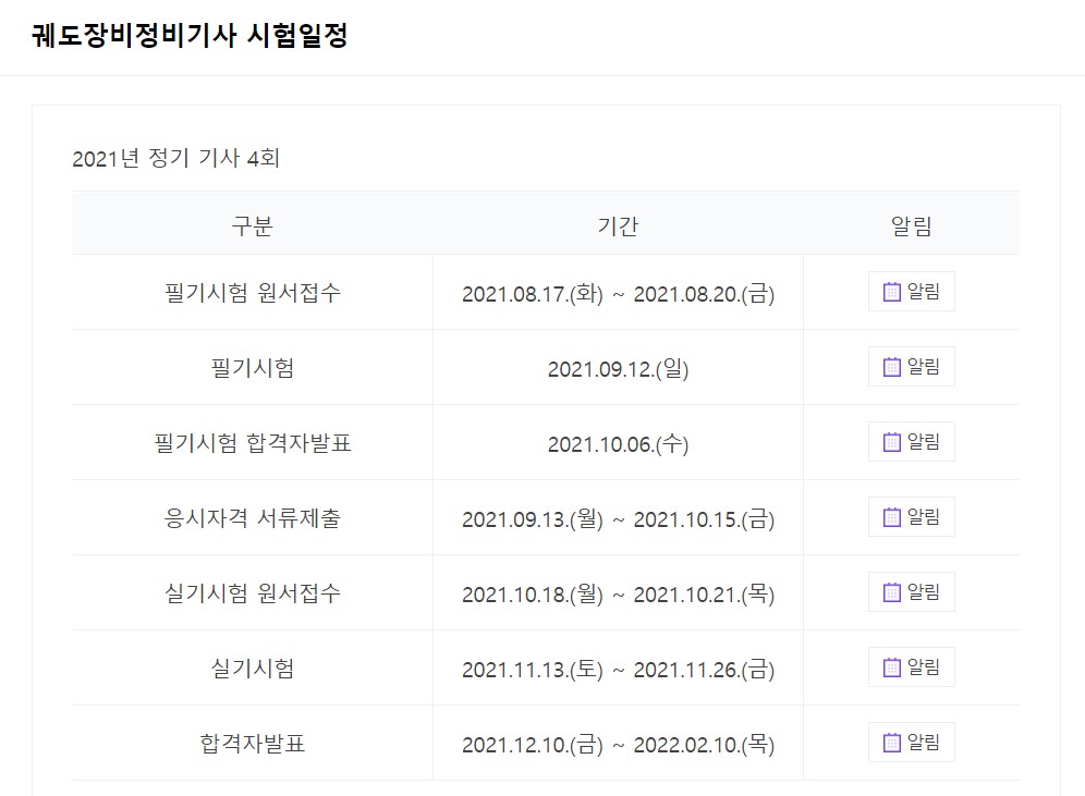 2021년도 시험일정 알려드릴게요.